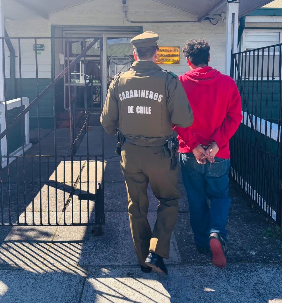 Paillaco.– Carabineros detuvo a un individuo por los delitos de robo en lugar habitado, desacato en contexto de violencia intrafamiliar y porte de arma corto punzante, tras un procedimiento desarrollado en el sector urbano de la comuna.
